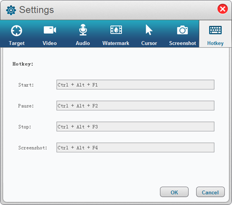 The default hotkey is showing as follows, you can change the hotkeys according to your own needs.