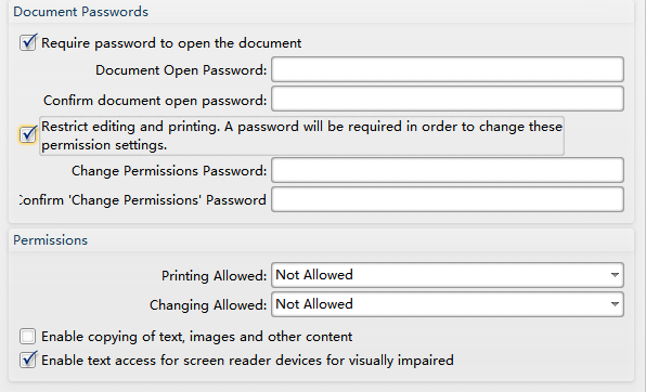 Many PDFs also use a “Change Permissions Password” to enforce restrictions on printing, editing, and content copying (like the settings in the “Restriction editing and printing” section). GiliSoft PDF Editor excels at stripping away these permissions: